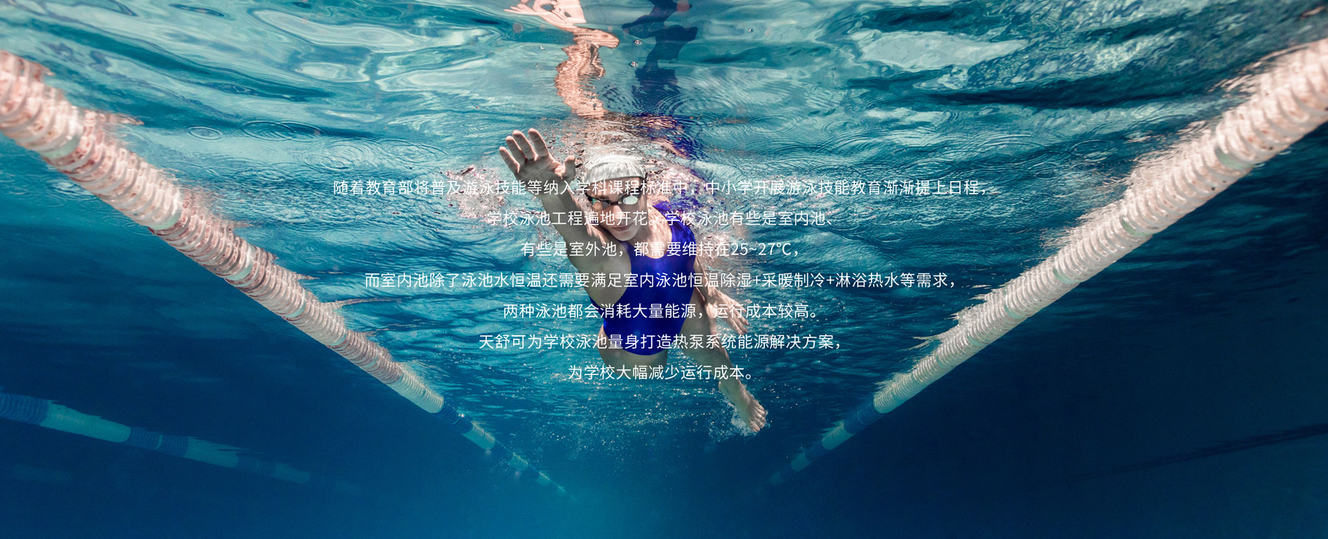 學校一直將學生的身心健康放在首位,天舒泳池熱泵系統(tǒng)維持游泳環(huán)境的溫濕度動態(tài)平衡,創(chuàng)造健康舒適的游泳環(huán)境。